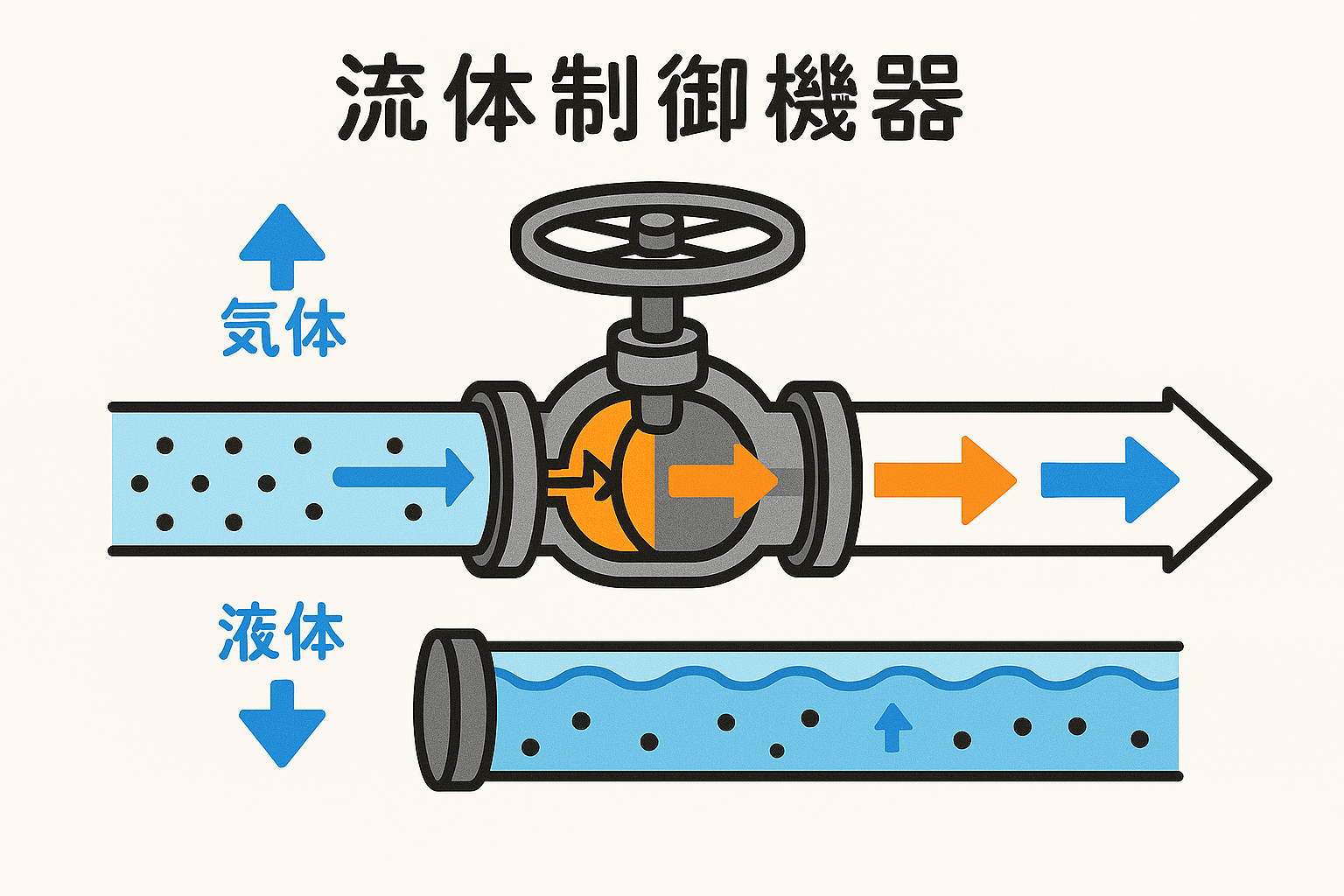流体制御機器とは、気体や液体(流体)の流れを制御・調整するための装置や機器のことです。流量調整や圧力の制御、方向の切り替えなどを目的に使われています